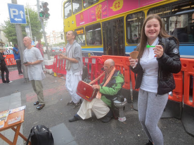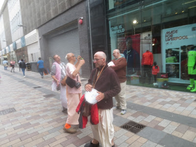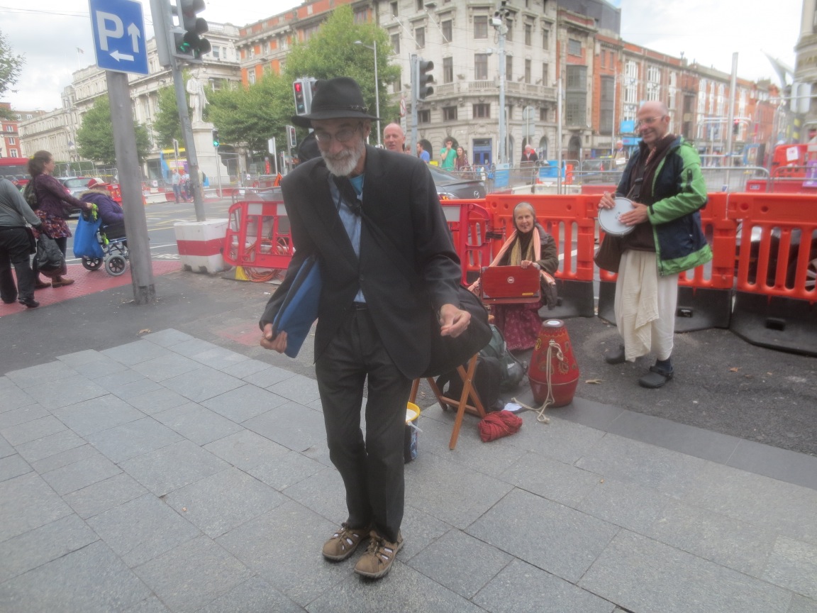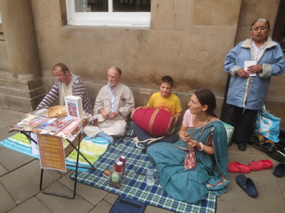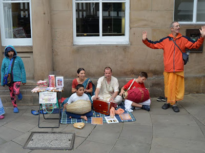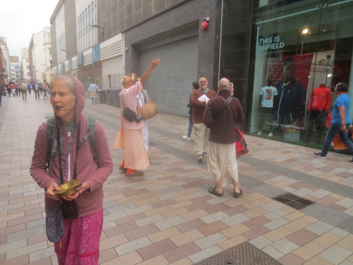 I spent the entire second half of May chanting Hare Krishna for three hours each day in different venues in Paris. It was nice for me to stay in the Paris temple, with a morning program and beautiful deities of Radha and Krishna (Parisisvara), which was an increase for me over The North of England. Also by the grace of Krishna, every day devotees joined me on harinama: