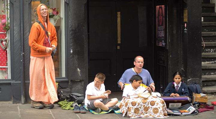After so much traveling around The North of England in May, and even visiting London, I finally settled down in Newcastle for a week, except for two one-day trips, one on Tuesday to Edinburgh to do harinama and speak at their weekly Tuesday evening program,and one on Saturday to York, to do harinama and speak at their monthly evening program. While in Newcastle I did harinama there and in the nearby cities of Chester-le-Street, Durham, and Sunderland. The following week I did harinama and an evening program in Chester.Then to Sheffield for their Wednesday evening program and Thursday afternoon kirtana, and to Brighton to do harinama and spend time with Janananda Goswami on Friday and Saturday. Back to London for the Ratha-yatra on Sunday. Monday I chanted in Birmingham with Sutapa Prabhu and devotees from the Manor and the world harinama party, Harinam Ruci, on our way to chant in the cities around Manchester for the next several days.