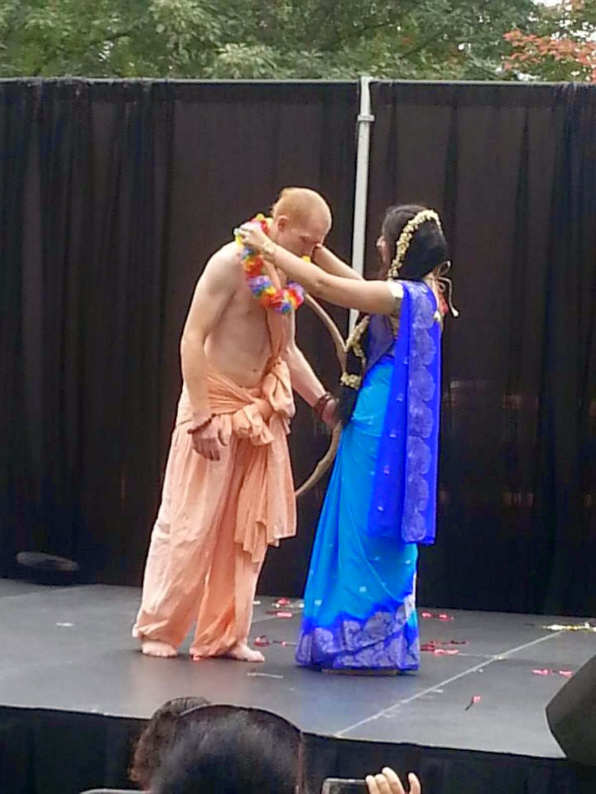 Rādhā wants Krishna to experience the fullest, ripest joys of bliss – so she first of all establishes mādhurya-rasa by generating Krishna’s form as an infinitely attractive young man, and herself as an infinitely attractive young woman.