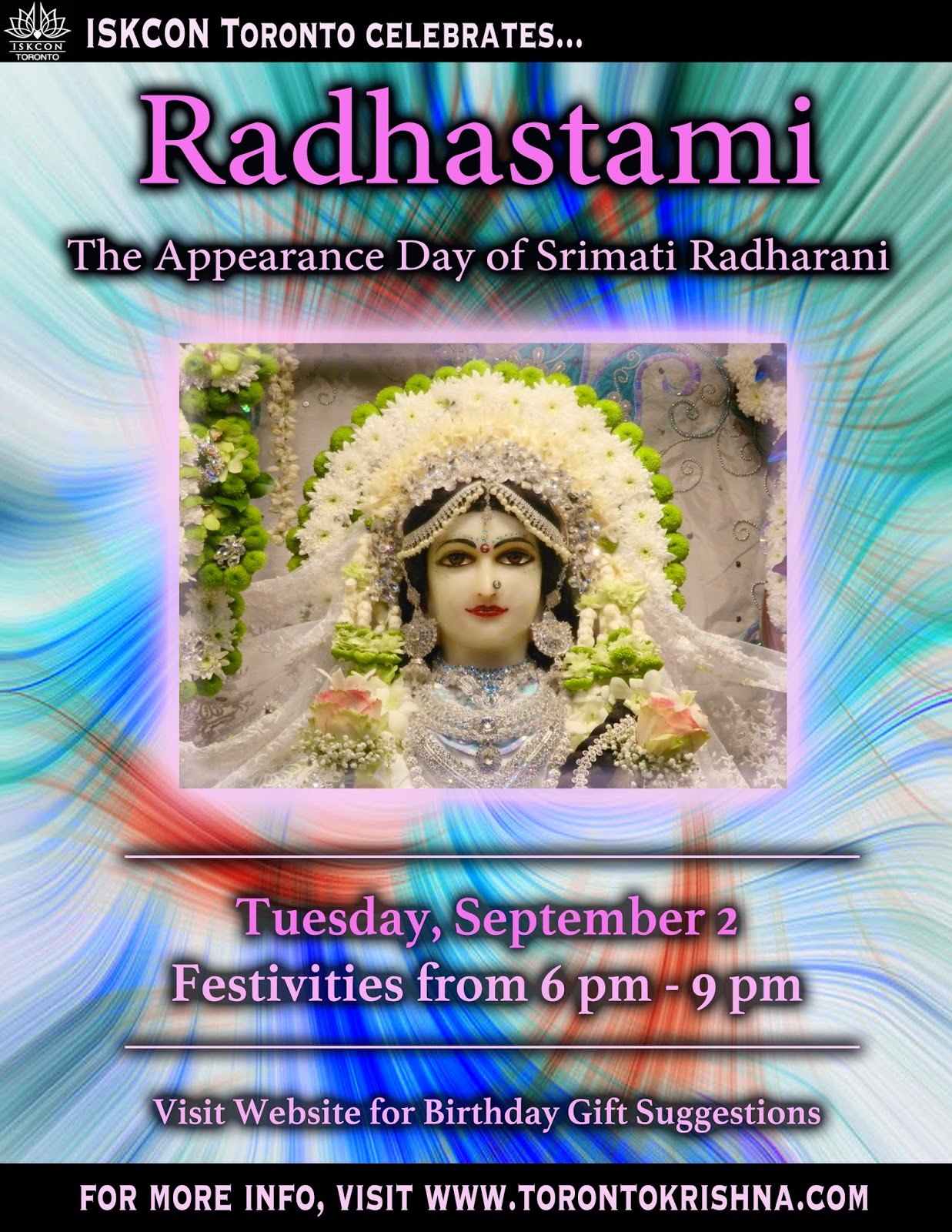 *Note: If you would like to bring an offering for Srimati Radharani, please bring it by 11:45 AM to the Radha Gopinath Mandir.