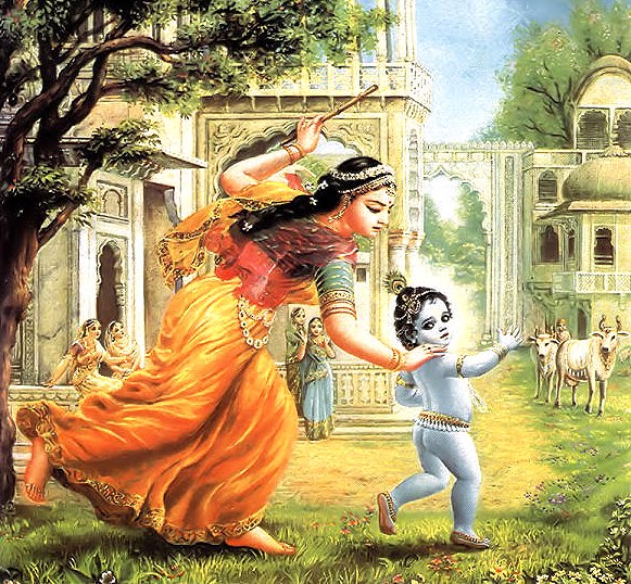 The Maha Mantra is likened to the sound of Sri Krishna’s flute song which calls all the lost cows back home. Sri Krishna, by his flute playing and the rope He carries, assures the cows will be home in time for their milking. His big brother, Dauji, by the plow He carries, ensures that the oxen will be properly situated. And Srimati Radharani, Vrishabhanu Nandini, by the Name She cherishes, assures that the archetypal bull, Vrishabha will forever be honored.